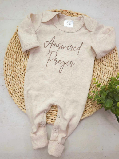 This completely neutral set is the perfect set for if you don’t know what you’re having, or live the gender neutral look. This features an ultra soft oatmeal romper and you can also choose a handmade knotted hat or hand-tied bow in matching oatmeal. This outfit makes a perfect coming home outfit, newborn pictures, or baby shower gift.