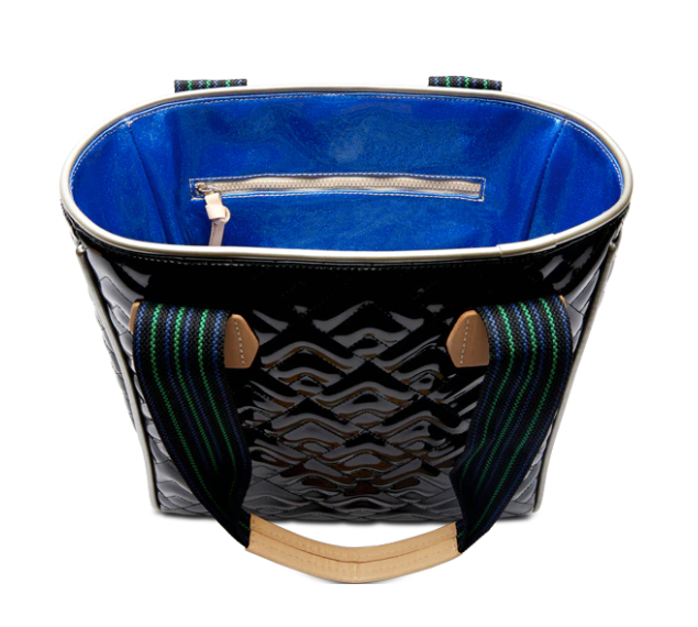 - Black patent Consuela quilted exterior and side panels