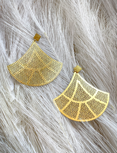 The detail in this earring is stunning! They are a gold metal earring, that are so light weight you will forget you have them in! A earring that makes a statement that you can wear with ever outfit!