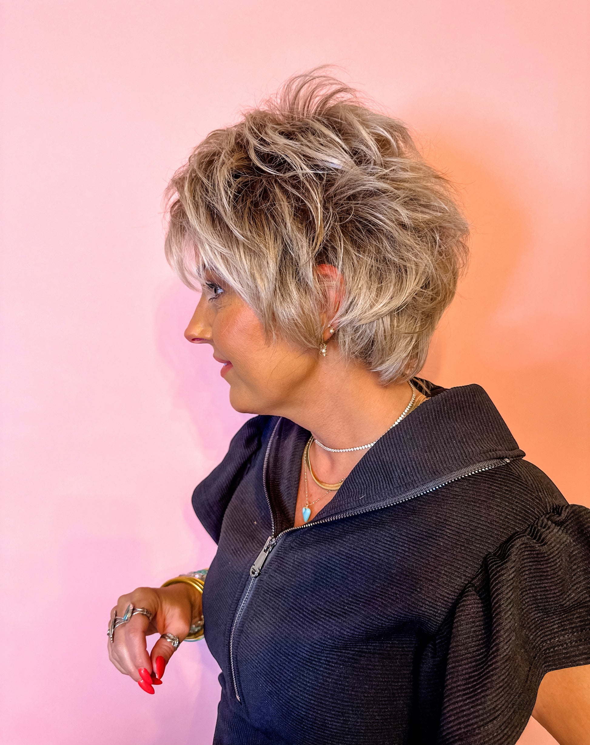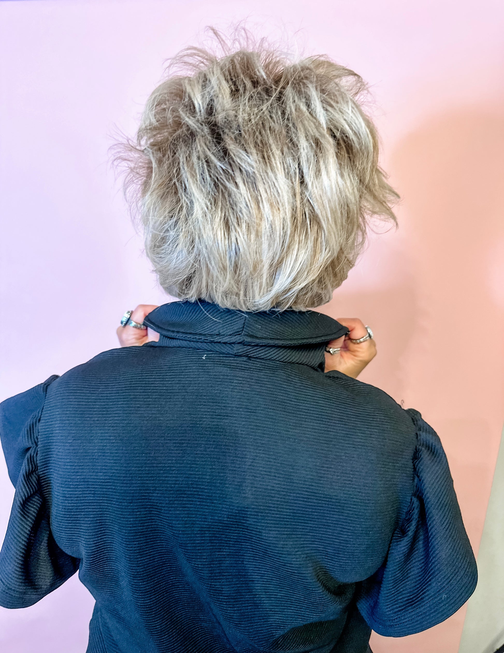 Make a subtle power play with this gently waved short crop. The fuller crown, snug bangs and sides, and tapered lengths exude an intensely chic and polished vibe. Style piecey or smooth and sleek; it’s your call.