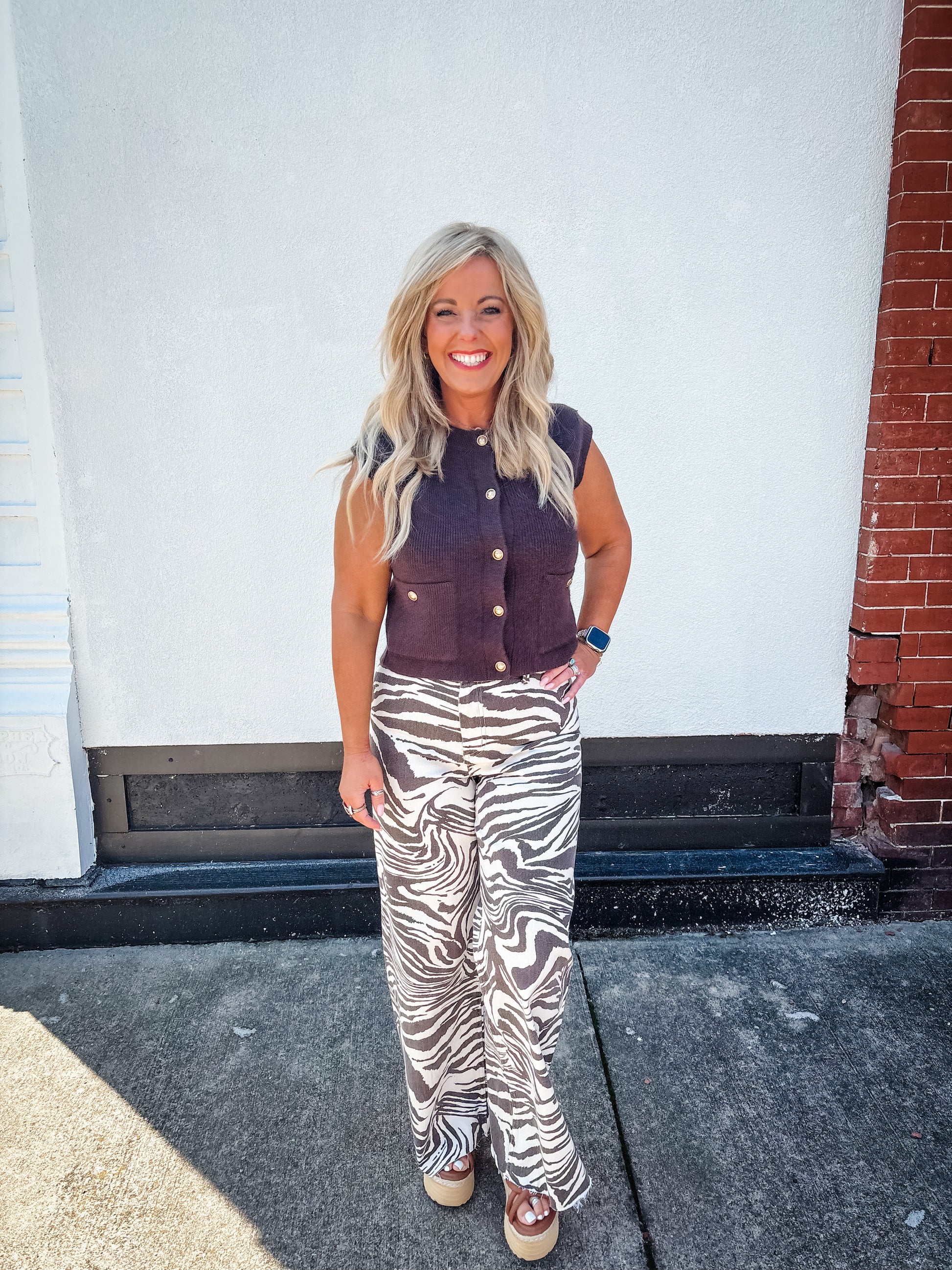 Feel and look chic in the sweater vest! A great timeless piece that look so much more expensive than it is! A soft sweater material with functional buttons allowing you to wear it open or closed!