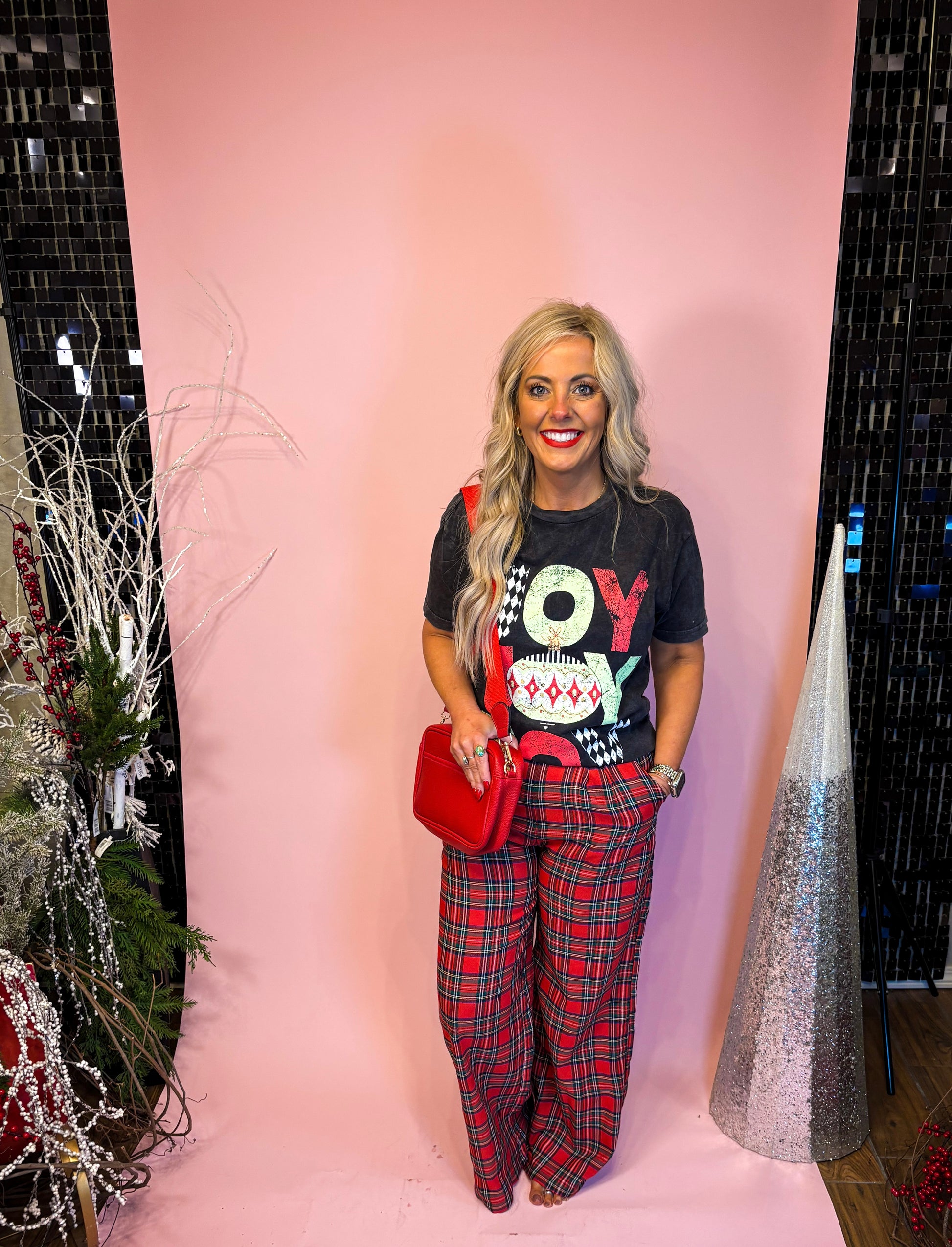 Crystal is wearing a small. She paired this cheerful graphic with our Merry in Plaid pants.