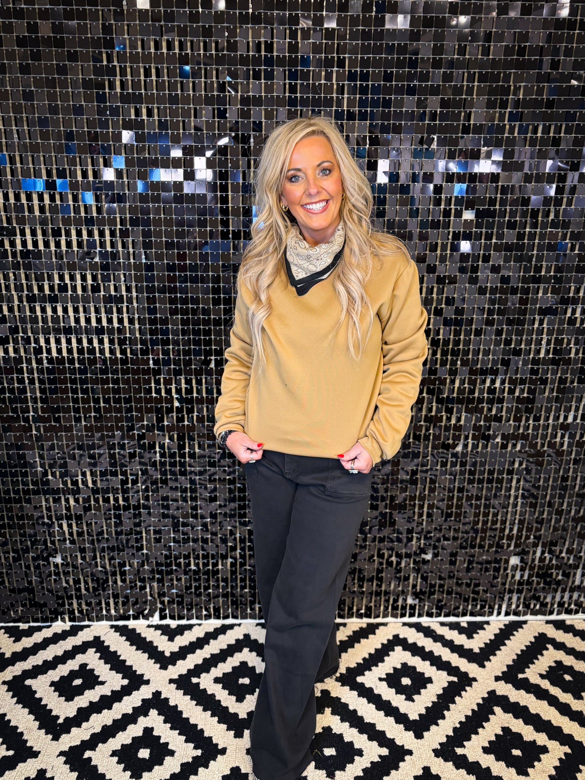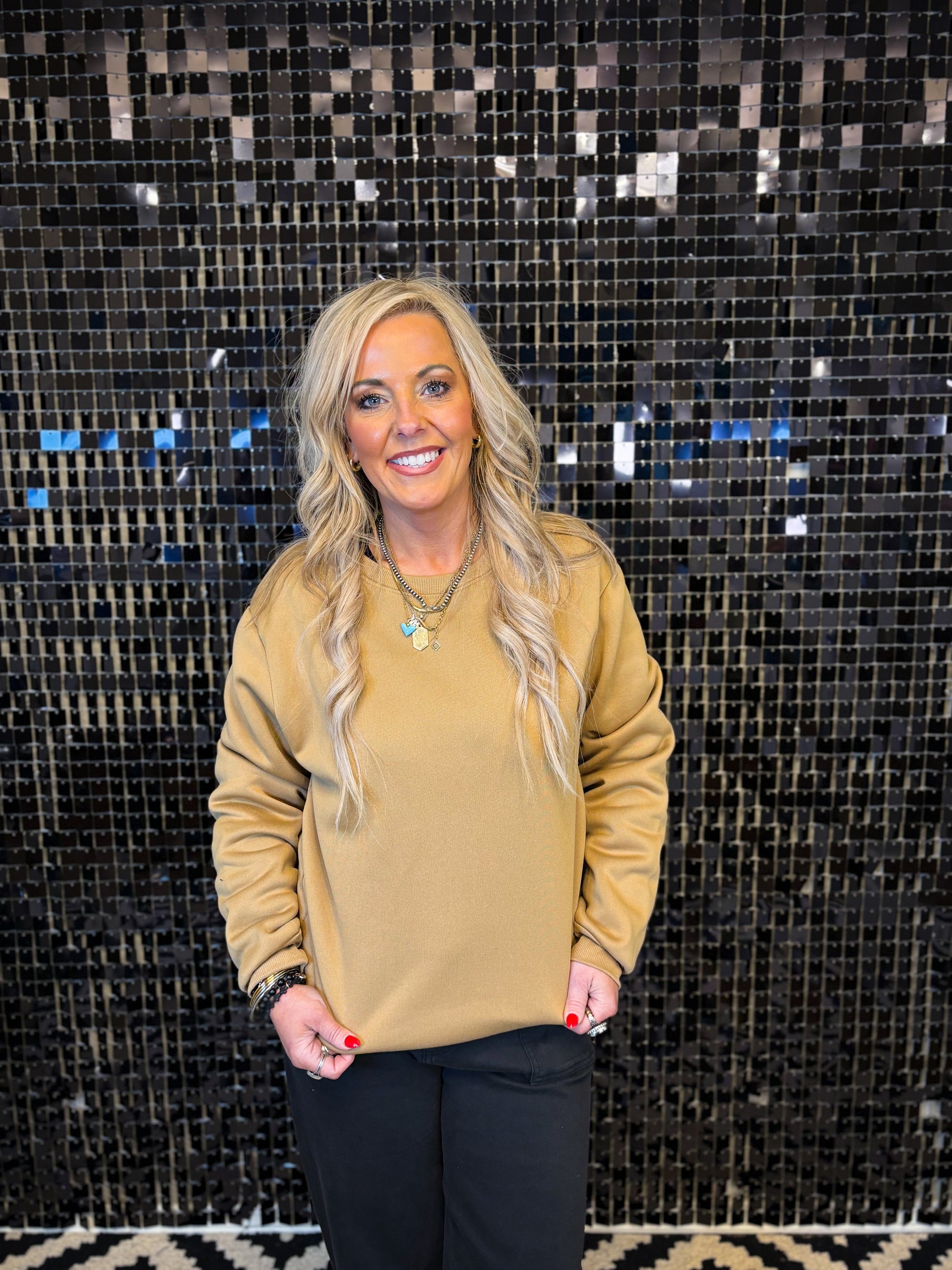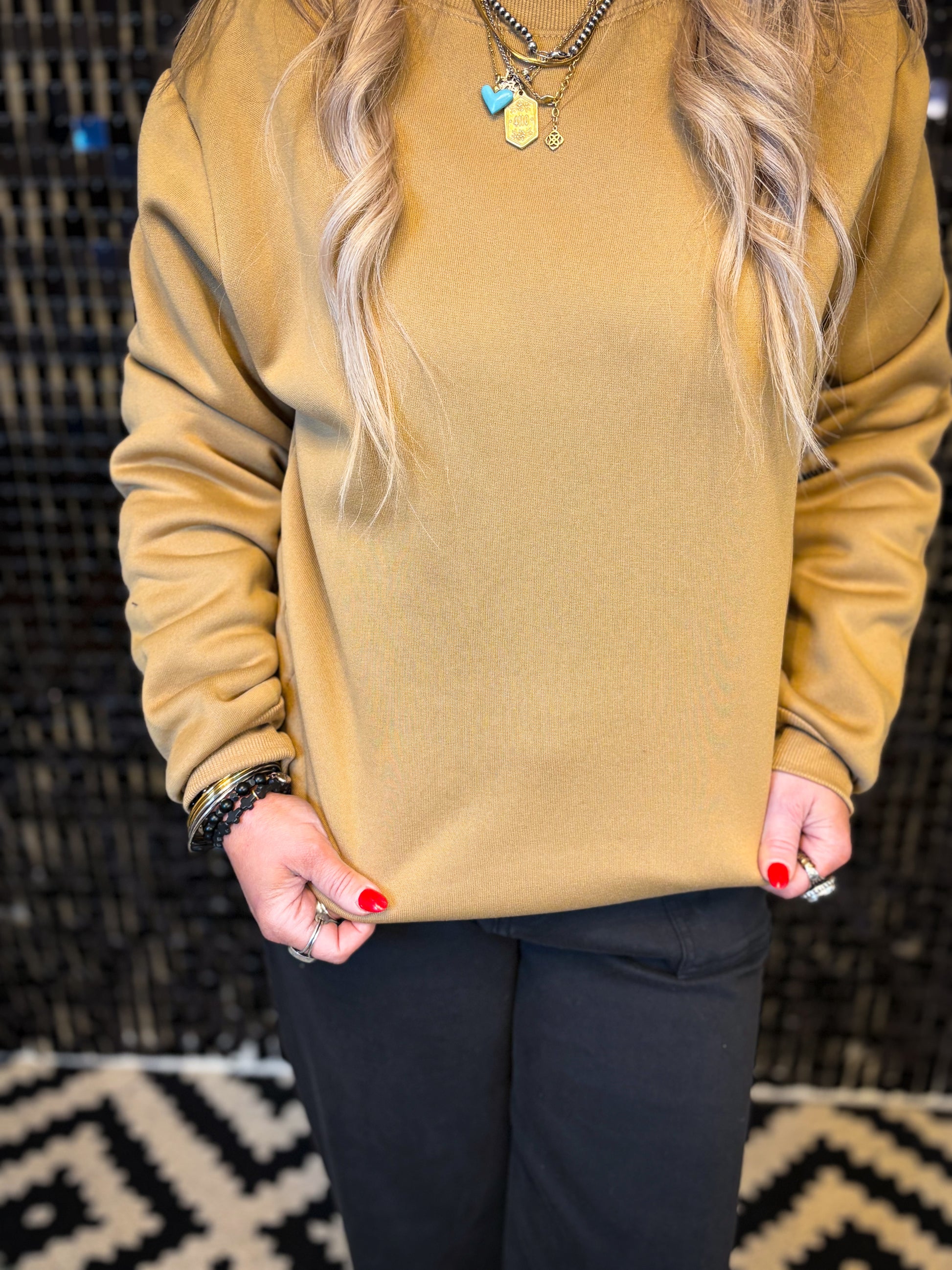 is neutral-toned crewneck is crafted from smooth scuba material for a structured yet comfortable feel. Designed with a clean silhouette, it’s the perfect everyday layer that looks polished while staying effortless.