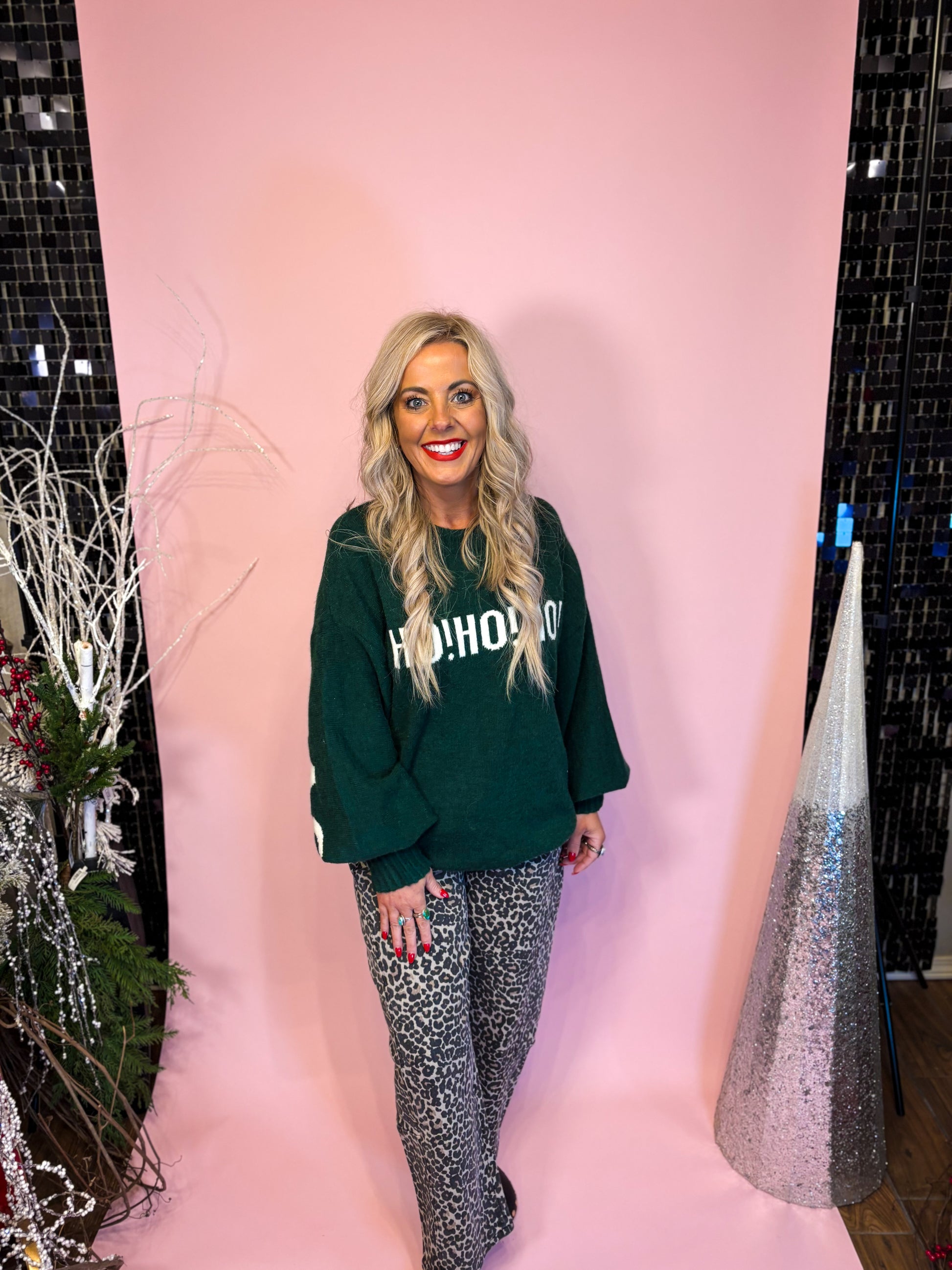 Wrap yourself in holiday cheer with this high-quality green sweater, featuring a bold “Ho Ho Ho” on the front and a festive “Merry Christmas” on the back. Soft, durable, and designed to spread joy from every angle.
