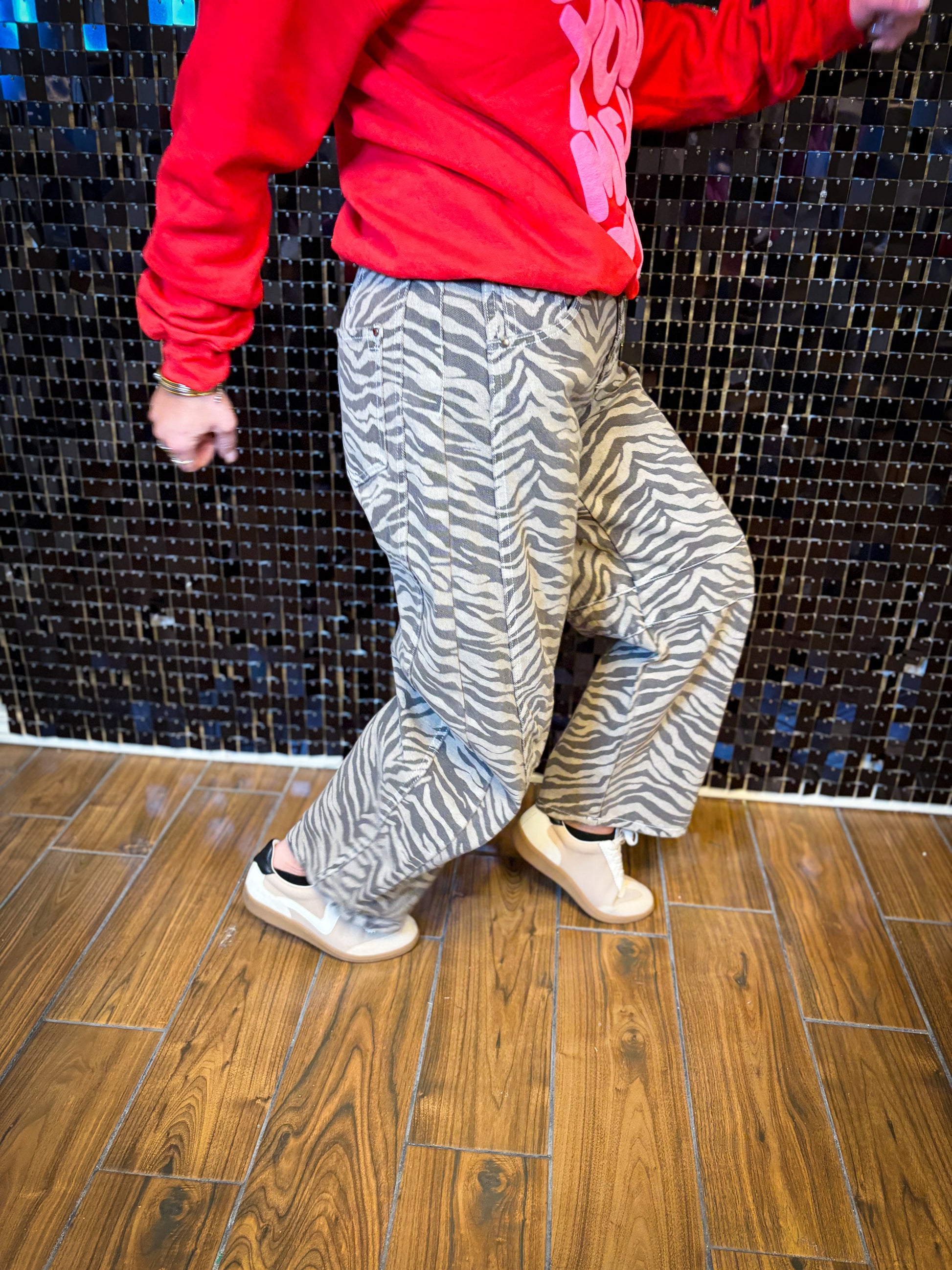 These jeans bring the fun. With a roomy barrel fit and bold zebra in mocha, they’re the perfect mix of statement and staple. Comfortable, flattering, and surprisingly versatile style them with basics, layers, or your favorite sneakers for an effortlessly cool look.