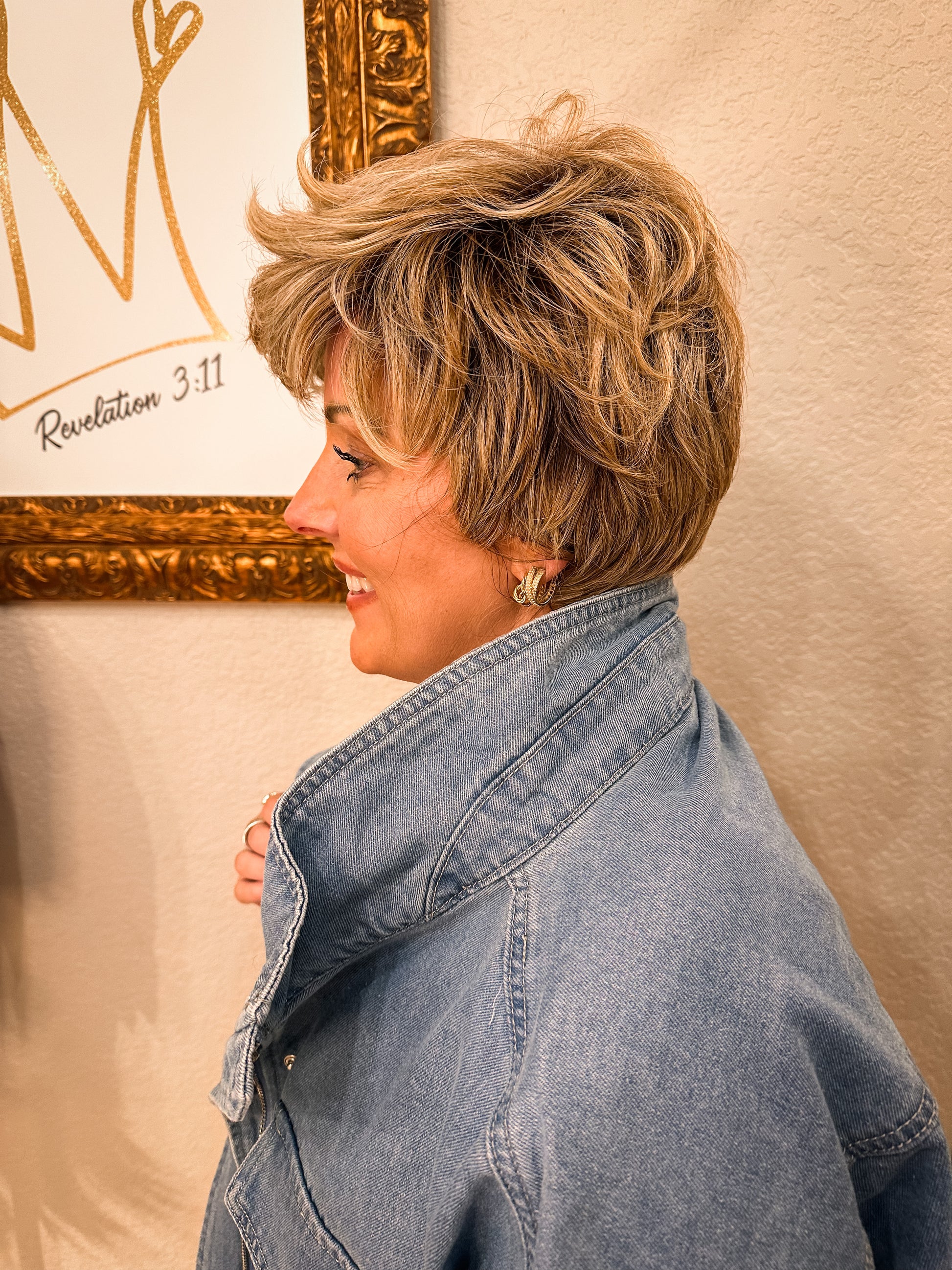 Victoria is a no-fuss wig great for all ages! It's a great pixie that can be a fun, messy look or a put-together, in-place look, depending on what you want that day! It has a temple-to-temple lace front for a seamless look.